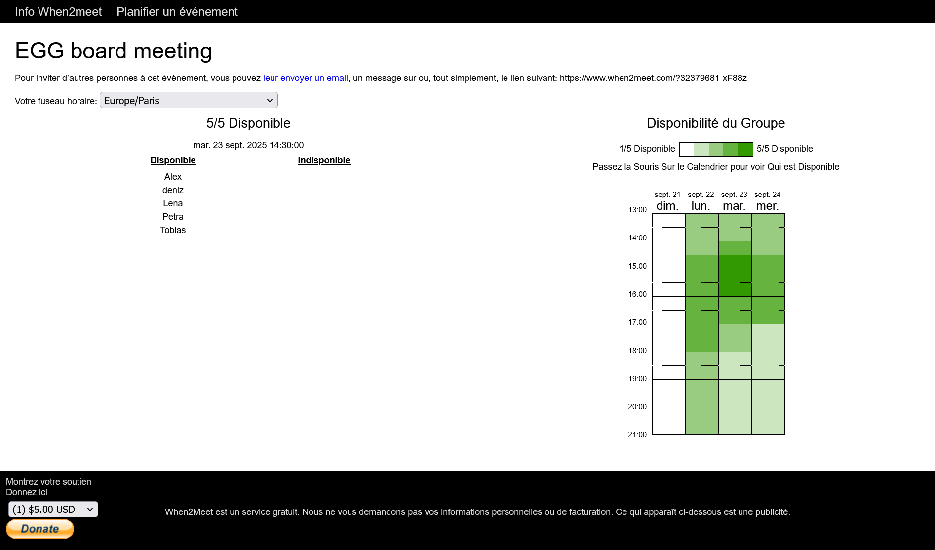 6. sets up a when2meet in order to find a spot for the board meeting (the screenshot of the when2 meet is below).